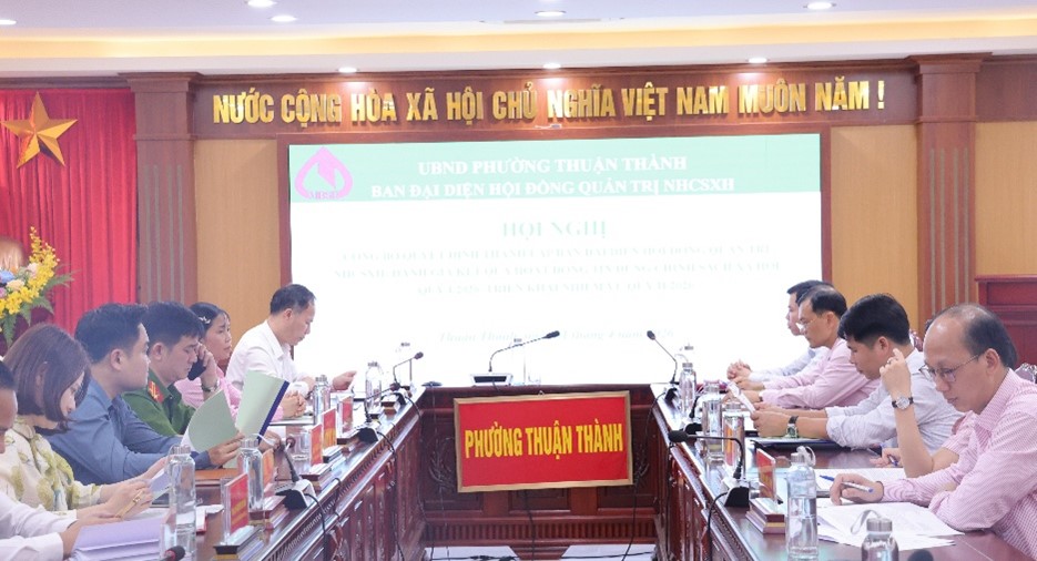 Tại hội nghị, đồng chí Nguyễn Xuân Mạnh, Chánh Văn phòng HĐND, UBND phường công bố Quyết định thành lập Ban đại diện Hội đồng quản trị NHCSXH phường Thuận Thành. Ban đại diện gồm các đồng chí lãnh đạo chủ chốt và đại diện các ban, ngành, đoàn thể của phường. Ngay sau đó, hội nghị đã tổ chức ra mắt Ban đại diện. Việc thành lập Ban đại diện có ý nghĩa quan trọng trong việc kiện toàn tổ chức, nâng cao hiệu quả quản lý, điều hành và giám sát hoạt động tín dụng chính sách xã hội tại địa phương.