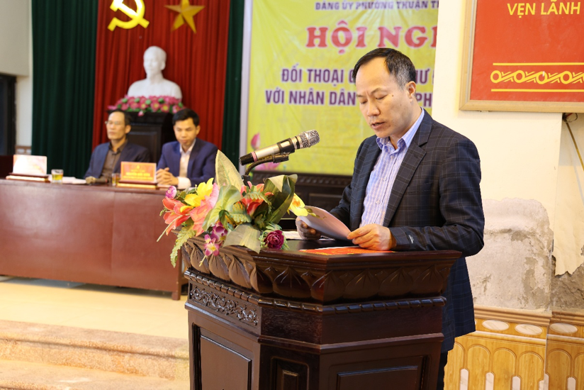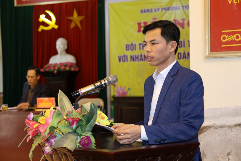 Phát biểu chủ trì nội dung đối thoại, đồng chí Trần Ngọc Thực – Bí thư Đảng ủy phường nhấn mạnh mục đích của Hội nghị là phát huy dân chủ, lắng nghe ý kiến Nhân dân, kịp thời tháo gỡ những khó khăn, vướng mắc ngay từ cơ sở; đồng thời đề nghị UBND phường và các cơ quan chuyên môn tập trung trao đổi, giải đáp rõ ràng, trách nhiệm các ý kiến, kiến nghị đã được tổng hợp.