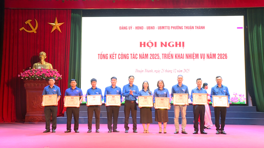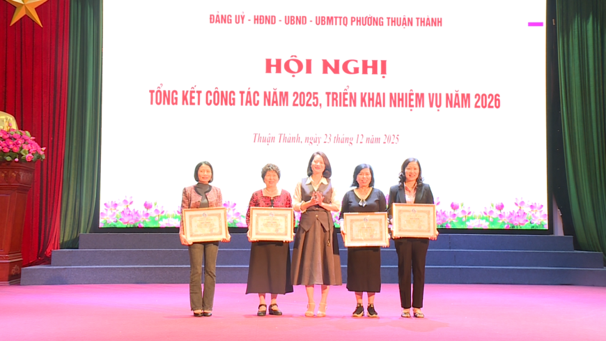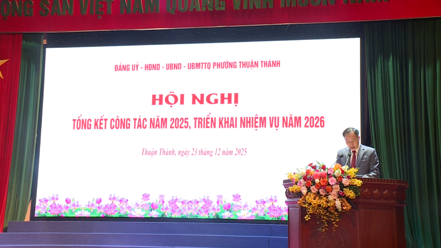 Chiều 23-12, Đảng ủy, HĐND, UBND, Ủy ban MTTQ Việt Nam phường Thuận Thành tổ chức Hội nghị Tổng kết công tác năm 2025, triển khai nhiệm vụ năm 2026.